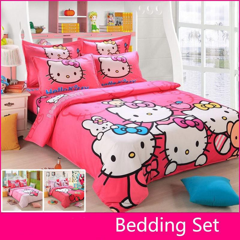 5 pcs printing technology : Queen size bed set now come with hello kitty bed design ideas. Cover any mattress with a set of hello kitty sheets that have your child's favorite characters on them. These hello kitty full size bedding sets transform a bedroom into a fun and colorful place to sleep. Hello kitty twin size duvet cover bedding set.